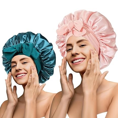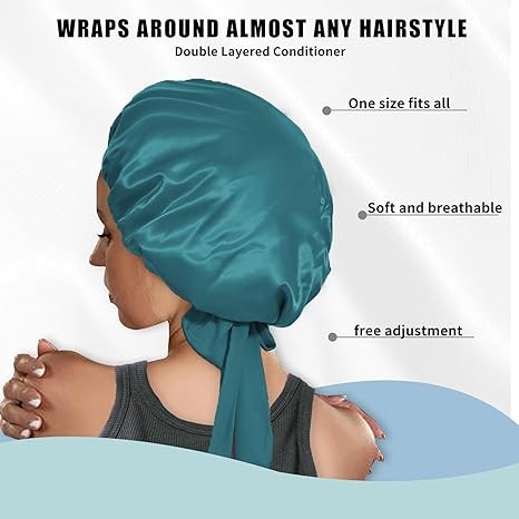 [Double layer material]: The satin bonnet is designed with double-layer fabric can wrap the hair well, and after using the hair mask, it will not stain the sheets when sleeping.