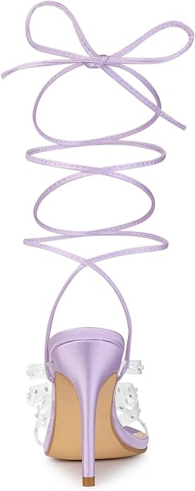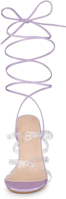 • Strappy High Heels Sandals, Stiletto Heeled, Rhinestones Clear Straps, Tie Up Closure