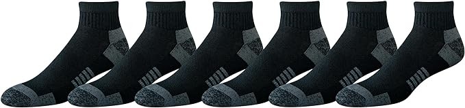 • MATERIAL: Amazon Essentials socks are made from high-quality and durable materials. These socks are a cotton-poly blend with elastane for superior fit and shape retention.
