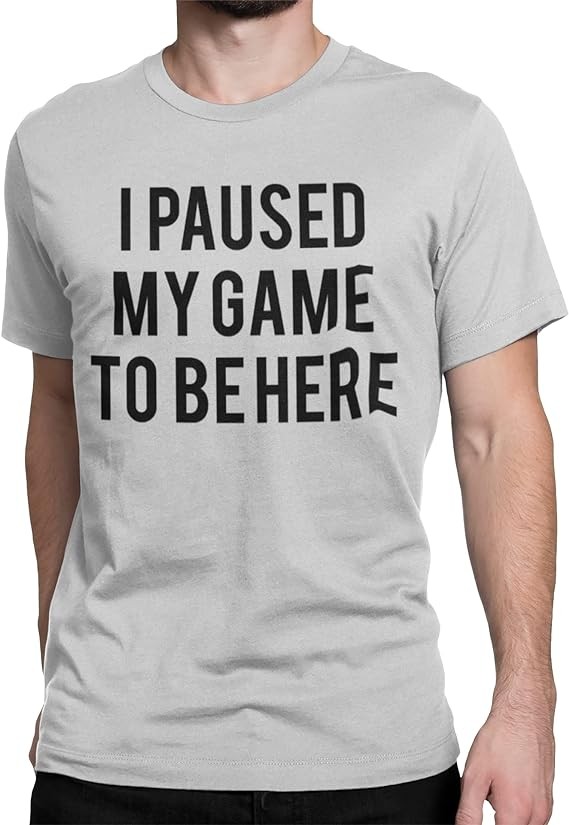• EXPRESS YOURSELF: A Convenient and easy way to dress and make a statement true to your interests! I Paused My Game to Be Here shirts are perfect for that Funny Gamer. Enjoy in these AWESOME colors of Black and Grey!