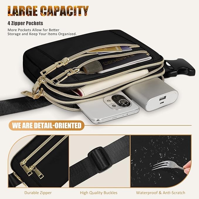 • 【Adjustable Belt & Sturdy Buckle】You can adjust the length for a comfortable fit, or vary the length as a crossbody bag, bum bag, waist bag, or everywhere belt bag to match your daily outfit. Expands up from 29 to 47 inches to meet various needs. We are detail-oriented, after comparing a variety of materials, we finally chose this strong and sturdy buckle which still works well after thousands of open-close tests. You don't need to worry about your waist packs will accidentally opening.