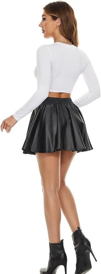 • 【Collocation】-The style of the black skirt costume are very versatile, It can be worn with solid color top, T-shirts, flat shoes or high heels. When the weather gets cold, you can wear leggings or long shoes under this ruched skirt. This cute skirts fits well for all seasons. This is a women wardrobe must-have faux leather skirt.