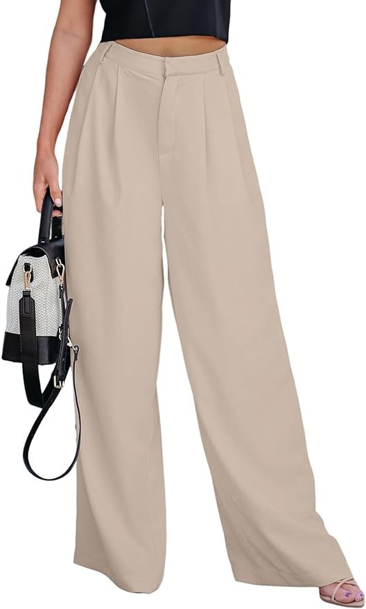 Dokotoo Wide Leg Womens Pants 2024 Work Business High Waisted Casual Dress Palazzo Flowy Trousers