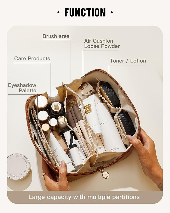 • ✅Easier Access Design:The Flat makeup bag that moves as fast as you do! It opens flat so you can see all your makeup at once — and then quickly scrunch things closed when you’re ready to go.