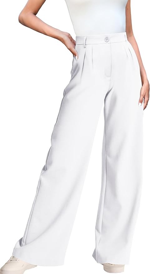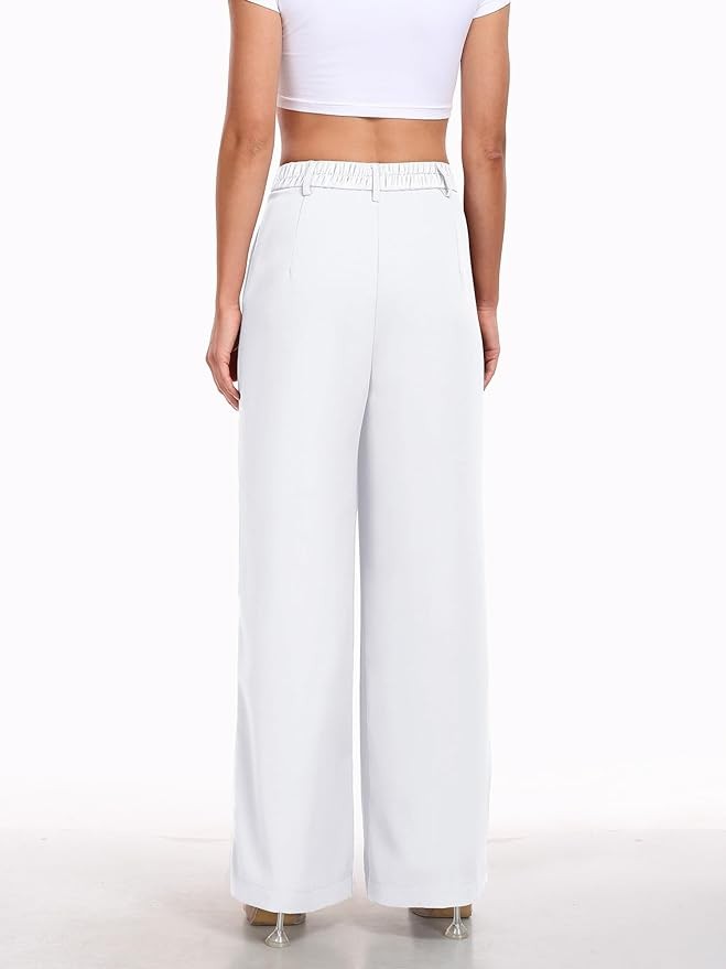 ELLEVEN Women's Casual Wide Leg Dress-Pants, High Elastic Waisted in The Back Business Flowy Trousers with Pockets