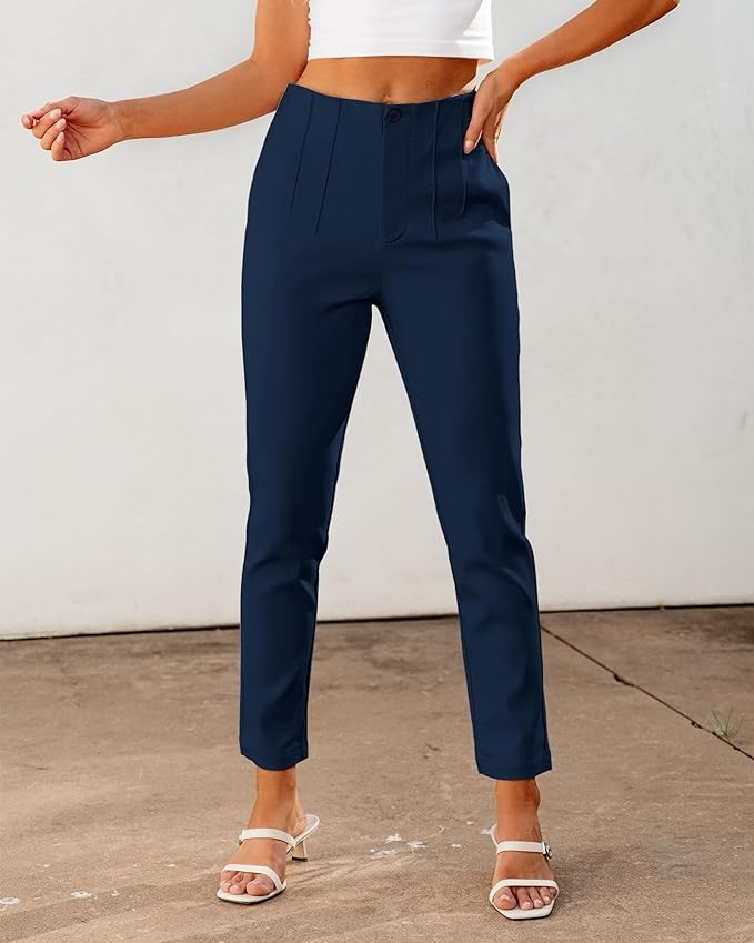 GRAPENT Cropped Pants for Women Dressy Casual High Waisted Pleated Pants Lightweight Stretch Slim Ankle Trousers Pants