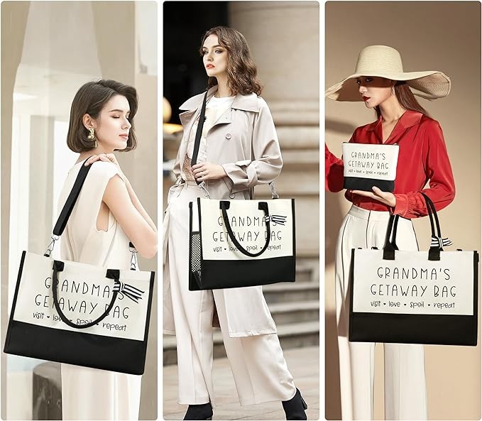 • Grandma Gifts For Her: Each personalized tote bag comes with a little makeup bag, which can store your small items. This large tote bag for women would be a ideal gifts for women, mom, grandma, teacher, bride, sisters and best friends. A special work bag, shopping bag, travel bag or beach bag, great Holiday gift, Birthday gift for women,Retirement gift, Thanksgiving Day gifts for mama or grandma, relaxation gifts, holiday gifts.