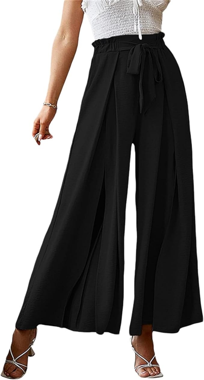 Juaugusep Women Wide Leg Long Trousers Casual Beach High Waist Palazzo Pants Loose Belted Summer Autumn Leisure Style