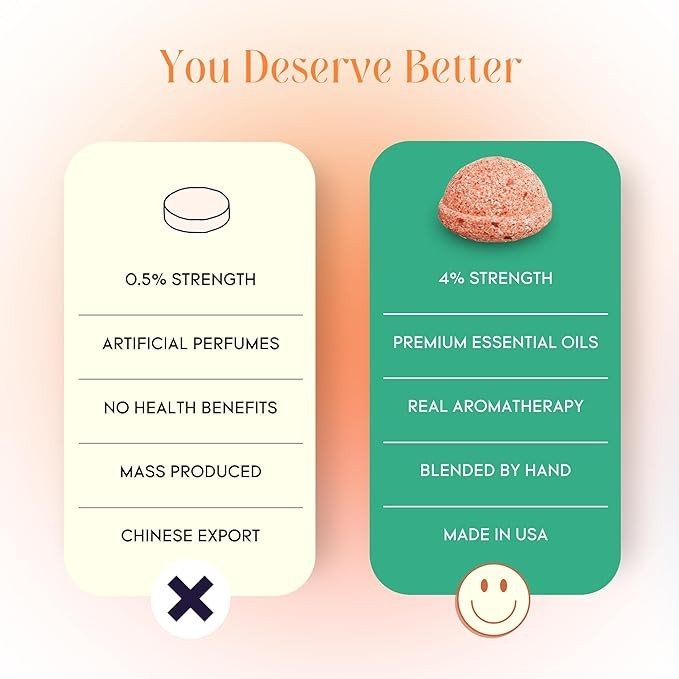 Kalpa boasts an impressive 4% concentration of wild-harvested organic essential oils, precisely calibrated to unleash a vapor of unparalleled intensity for a truly transformative impact on your mind, body, and soul. Don't compromise with lesser shower steamers that feature a feeble 1% blend of artificial perfume. Choose the best for an extraordinary experience.