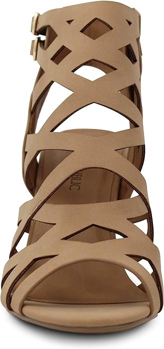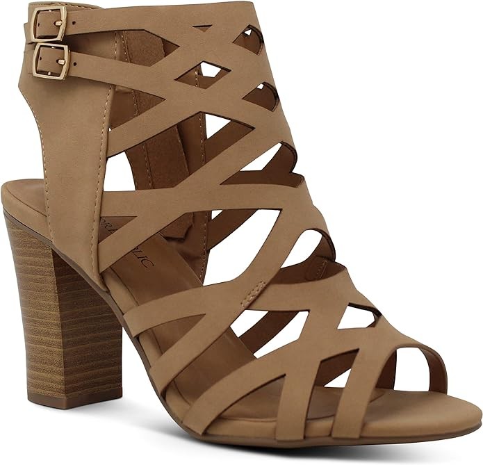 • Dress sandal featuring classy open toe, chunky heels, strappy upper with cutout caged effect, buckle accent, side zip closure for effortless and easy-to-put-on. Perfect for a flirty, edgy and fashion-forward look.