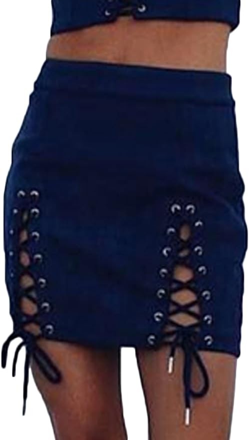 Meyeeka Womens Sexy High Waist Lace Up Bodycon Faux Suede Split Tight Mini Skirt