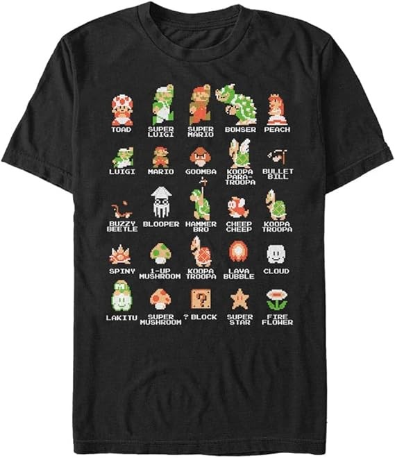 • Short sleeve t-shirt, crew tee, slim fit, pre shrunk, made in USA, machine wash, fashion tee, Nintendo, Character, Gaming, Gamer, Vintage, Old School