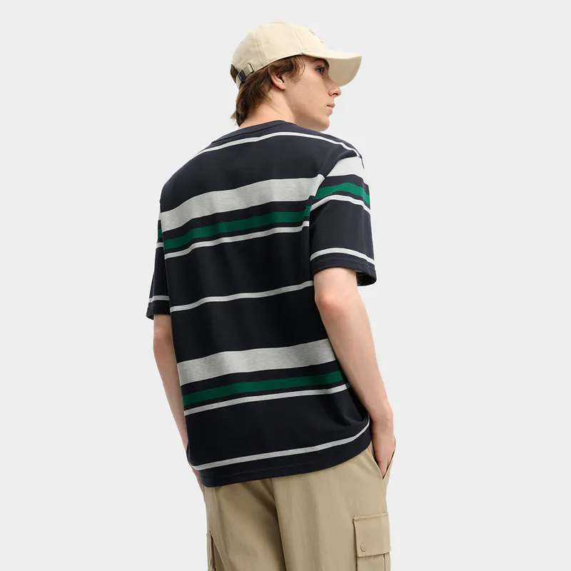 - Trendy misaligned striped short-sleeved T-shirt, exquisite embroidered LOGO on the chest, positioning color-woven stripes, young and fashionable.