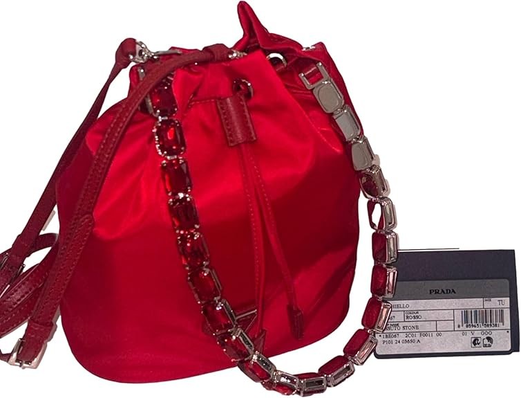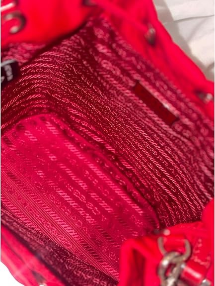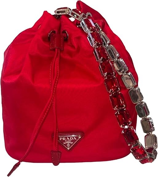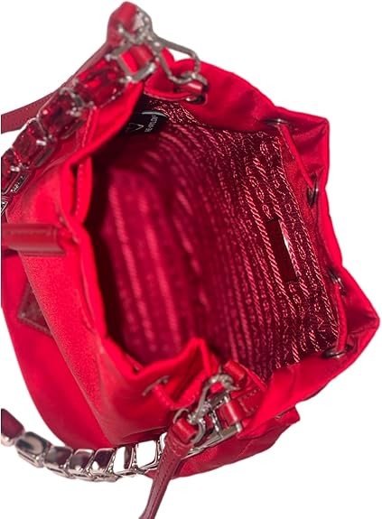 • The Prada Re-Nylon Rosso Red Drawstring Bucket Bag is a bold fusion of sustainability, glamour, and modern design. Model: 1BE067