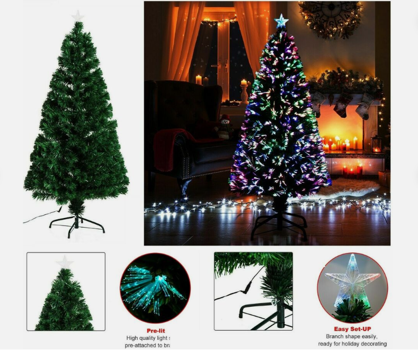 Pre Lit Fiber Optic Christmas Xmas Tree Colour Changing Xmas Lights Star Green