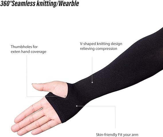 • One size fits most - Each cool arm sleeve has a total length of 37cm/14.56" and with high elasticity, which fits all upper arm sizes between 8"-15". Unisex for both Men and Women.