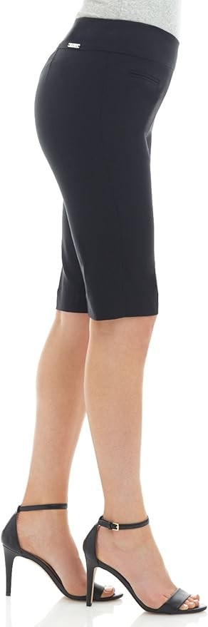 • COMFORT FIT: These ladies stretch shorts are a pull-on style (which means no zippers or buttons). The wide, smoothing contour waistband has a hidden elastic inside that ensures these dress shorts for women are incredibly comfortable. Added back darts for a perfect fit, no gaping!