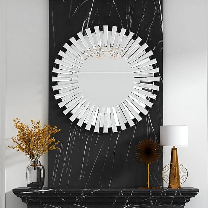 • Impressive 31.5-Inch Diameter: Elevate your living space with this generously sized 31.5-inch circular mirror. Perfect for your living room, entryway, or bedroom walls, it adds a captivating focal point, bringing a touch of sparkle to your room.