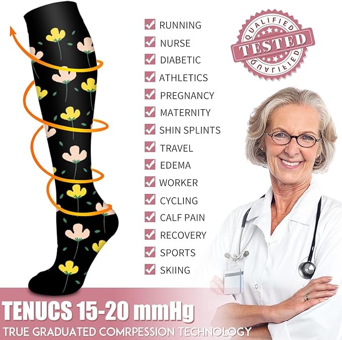 Tenucs Compression Socks for Women & Men 6 Pairs - Best Support for Nurses,Running,Hiking,Recovery & Flight Socks