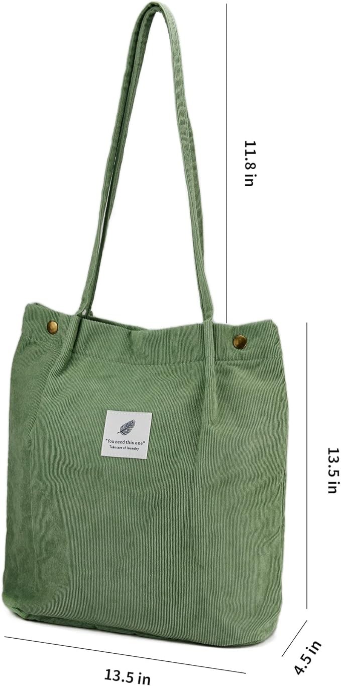 TOPASION Corduroy Tote Bag Cute Tote Bags for Women Shoulder Bag with Inner Pocket for Work Beach Travel and Shopping Grocery