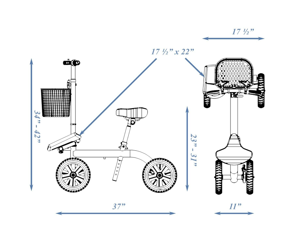• Smooth Seated Knee Scooter Specifications (L x W x H)