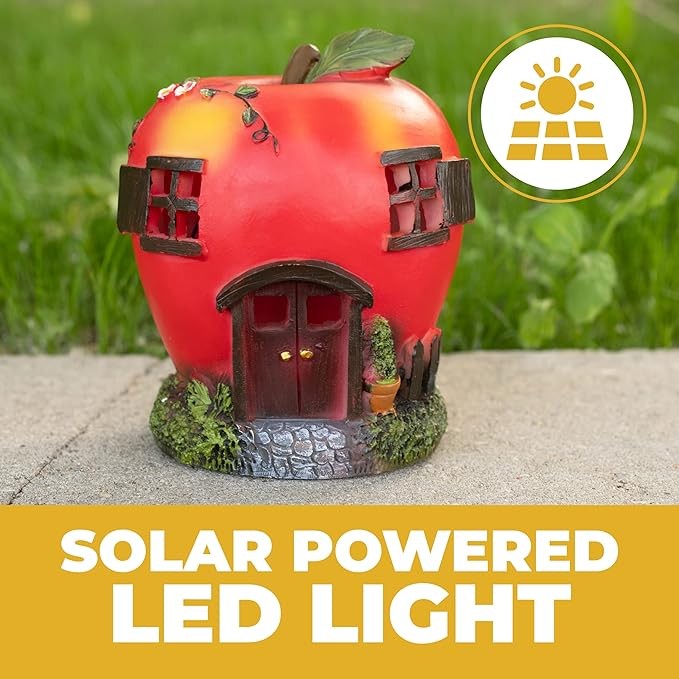 • Apple Fairy House Solar Garden Light. This adorable Solar Light for outside garden & Lawn will warm your heart and add vivid to your garden and outdoor Patio.