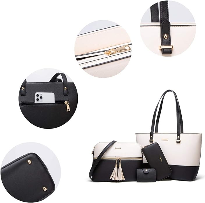 • √*Tote bag Pockets:One main zipper compartment with one inner zipper pocket,one back pocket and two slot pockets. 4pcs: One large handbag+one messenger Bag:+wallet clutch+card holder. Perfect for dating,shopping,working,traveling, vocation, party and other occasions and keep your daily items well organized.