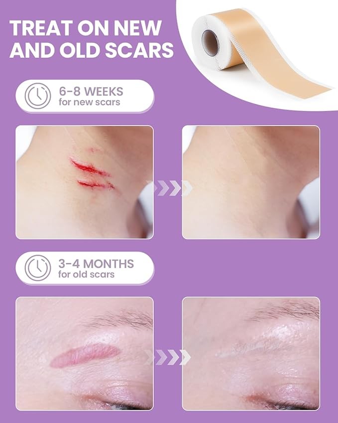 • 4 Steps to Reduce Scar: Clean and dry the scar, cut the silicone scar tape and peel off the backing layer before applying it to the scar and slightly pressing it. For optimal results, adhere to use for 6-8 weeks for new scars and extend to 3-4 months for old scars.